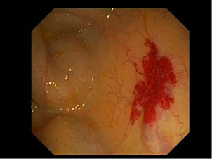 La angiodisplasia del colon es una enfermedad que se caracteriza por la aparición de vasos sanguíneos hipertrofiados y de aspecto varicoso en la submucosa de un segmento del colon, generalmente el ciego y colon derecho.
